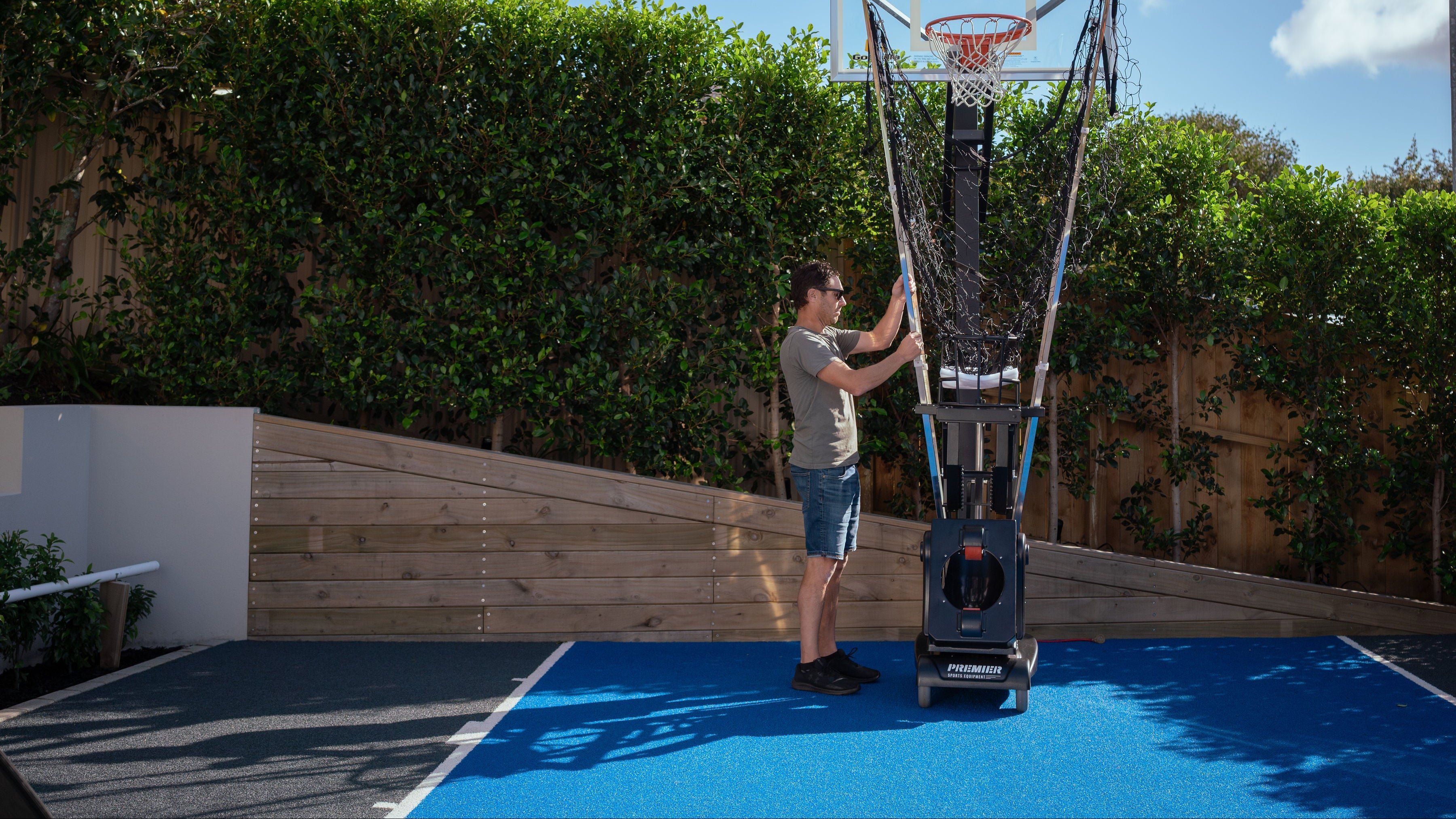 A durable, manual basketball return system built to keep your training sessions efficient and focused. Compatible with all basketball hoop systems.